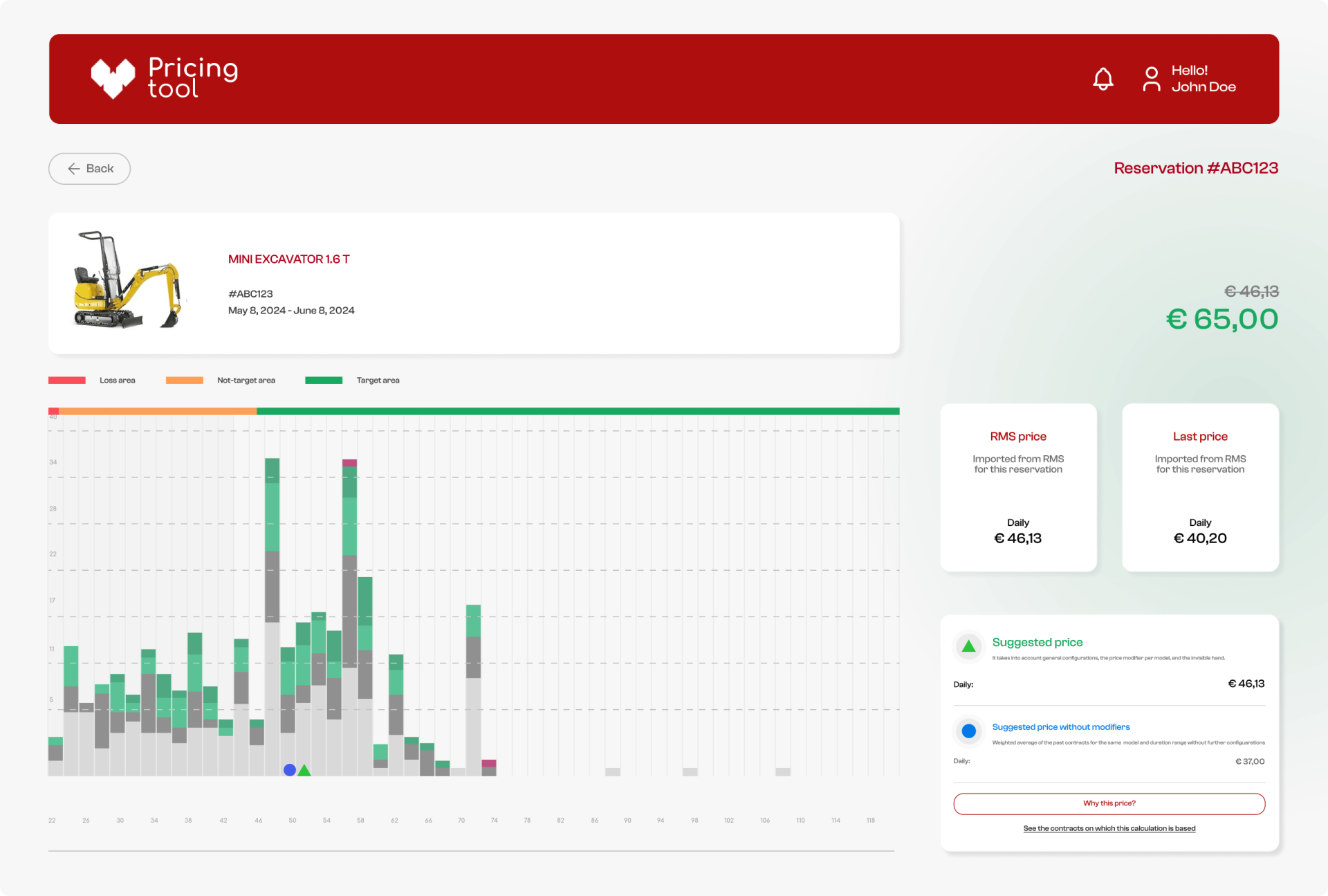 The Pricing Tool suggests the most suitable price for renting an asset, factoring in costs, business objectives, and the customer relationship.