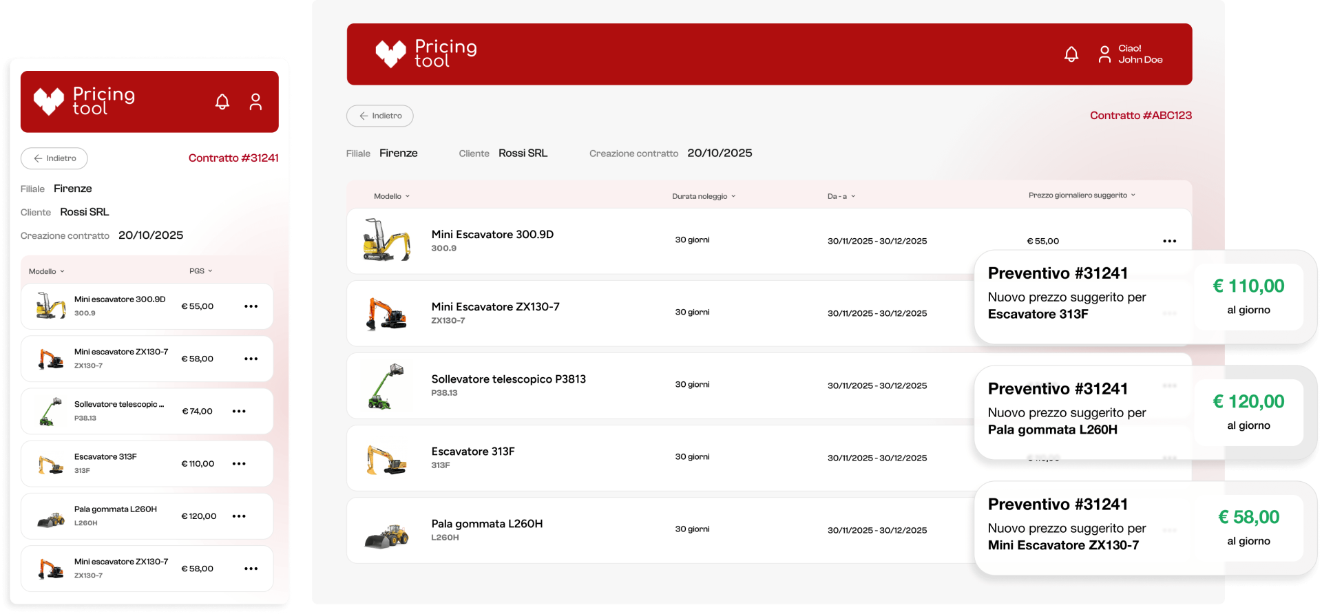 Il Pricing Tool suggerisce il prezzo più conveniente per il noleggio di un asset, tenendo in considerazione i costi e gli obiettivi aziendali e la relazione con il cliente.